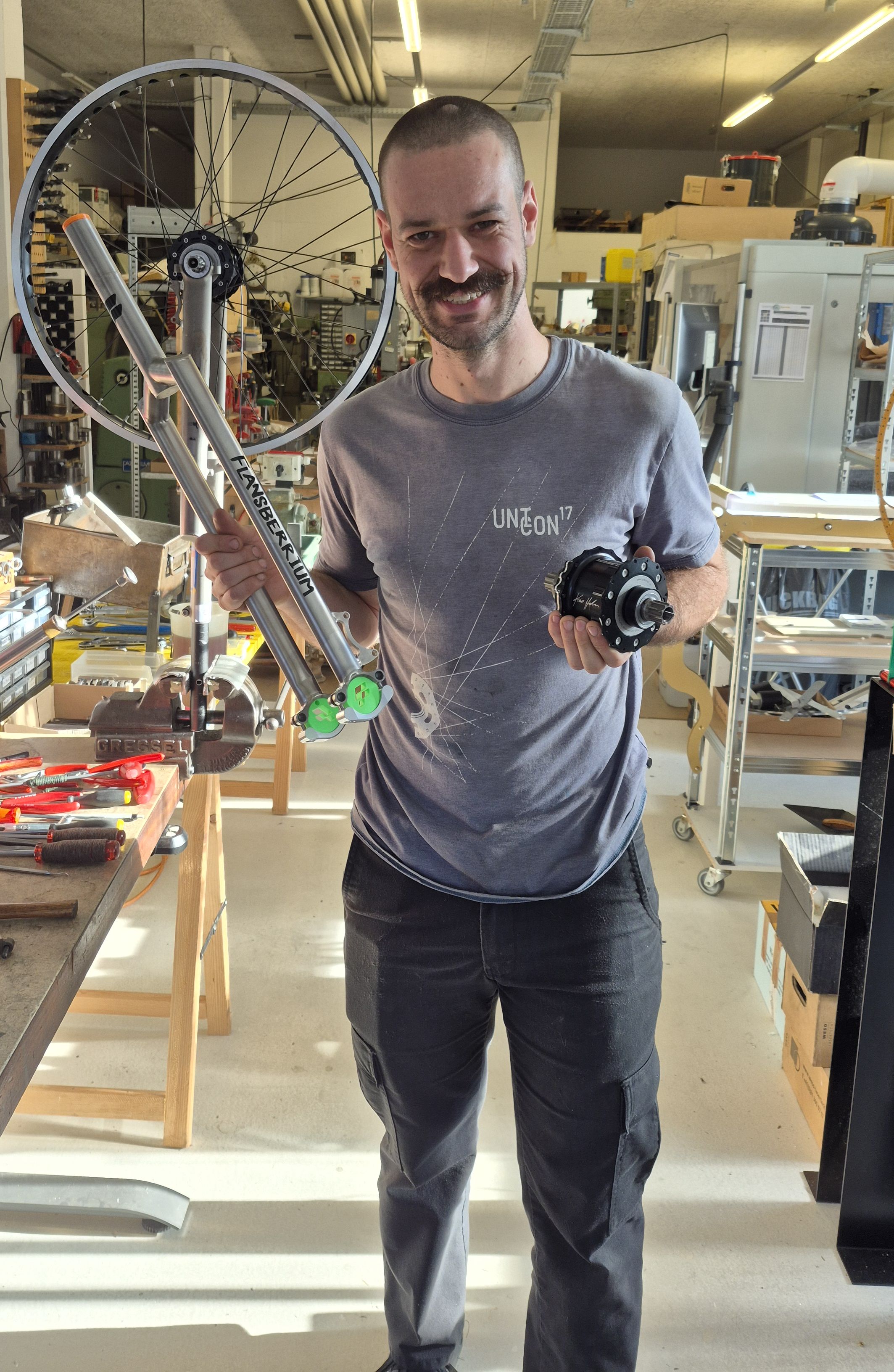 Jakob Flansberry, well known in the unicycle scene for his handmade, beautiful Flansberrium unicycle frames, is here with us for training. He will support us in all areas of unicycling in the future, including service and repairs.