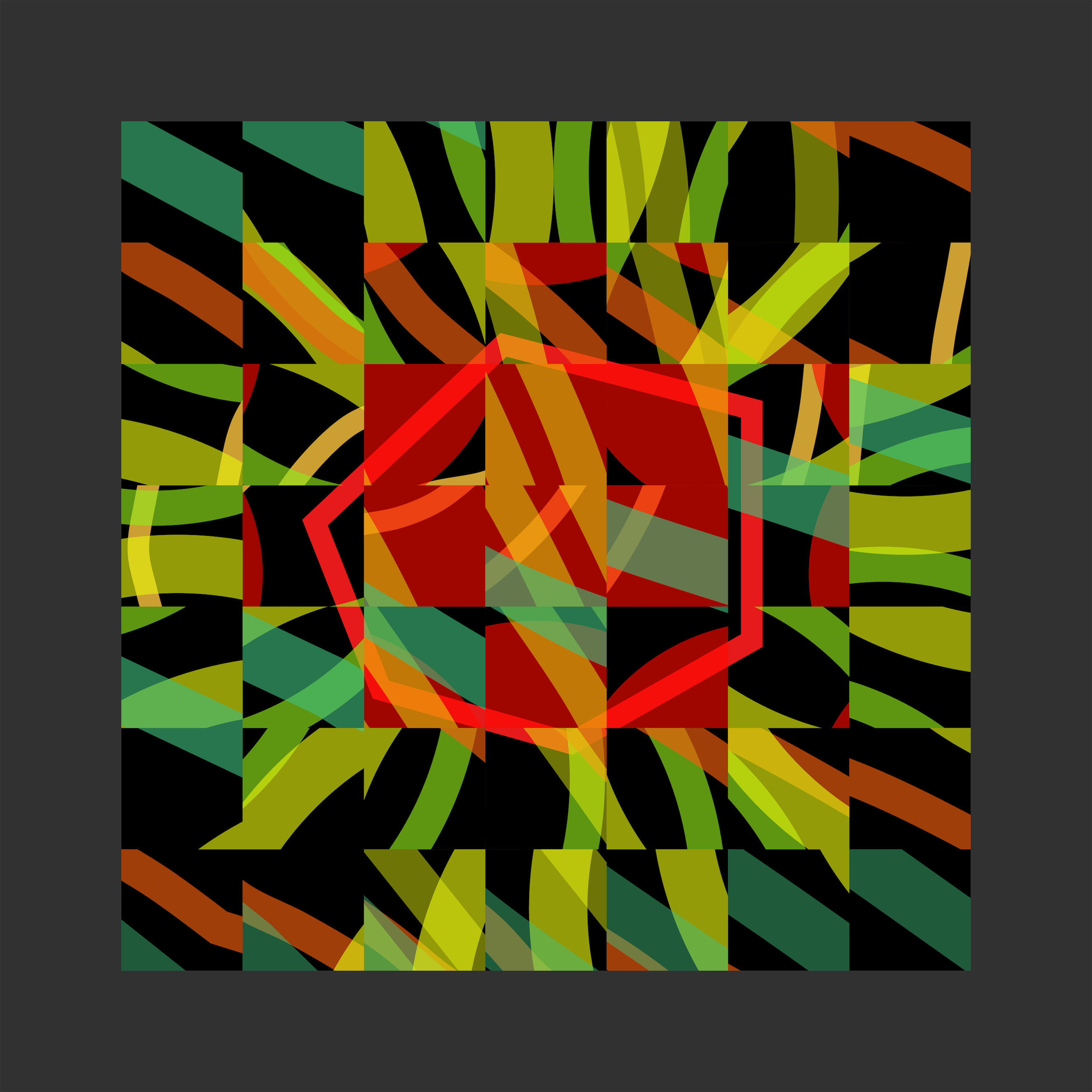 Ein Werk besteht aus 2x2 bis 13x13 Bildtafeln, welche sich synchron drehen.
